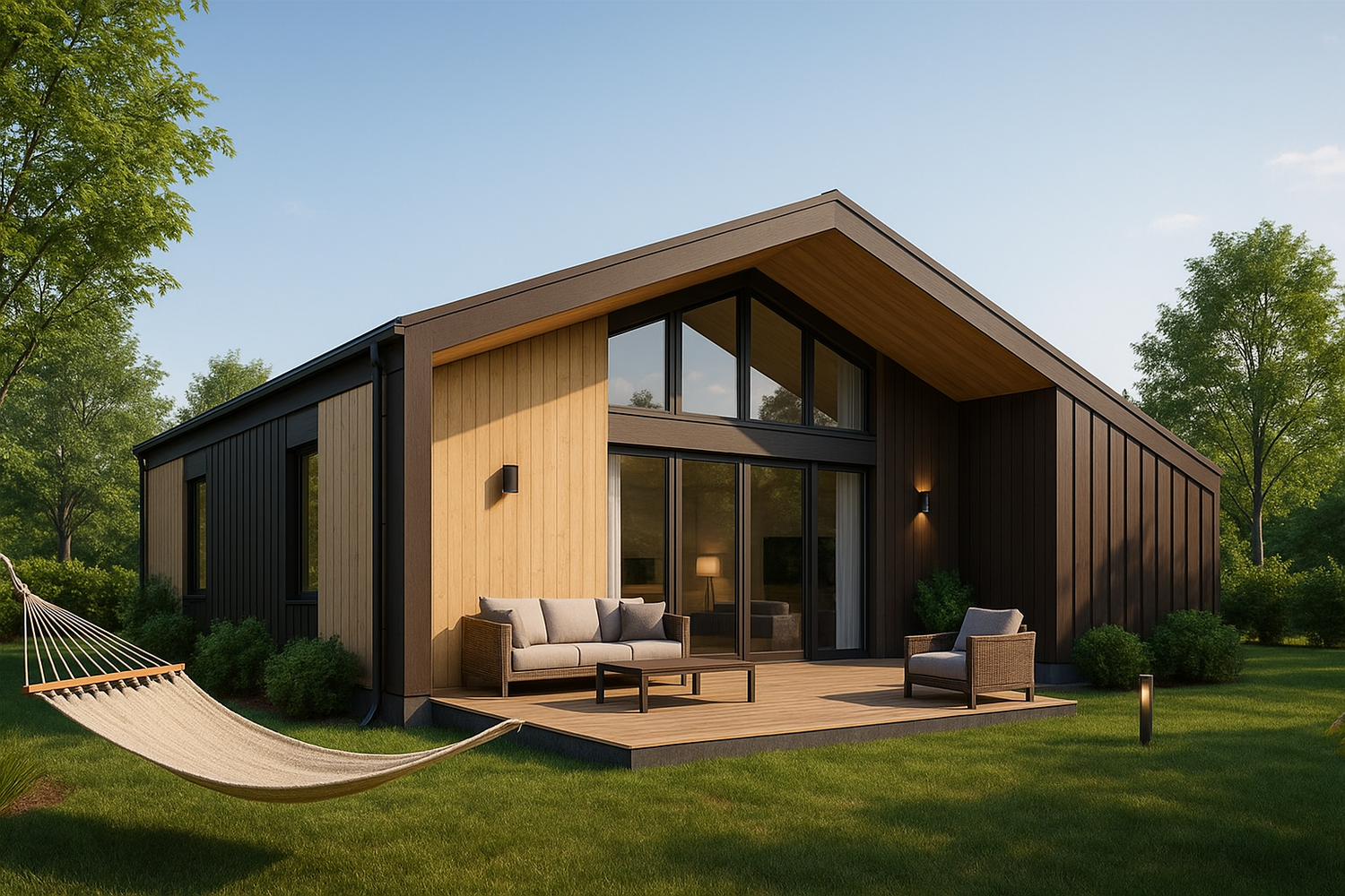 The finishing standard and individual elements of the offer, such as the shape, color, and roof covering, the color and type of joinery, and the type of heating (e.g., heat pump), can be changed. Please contact our Customer Service Department to prepare a customized offer with the desired changes.