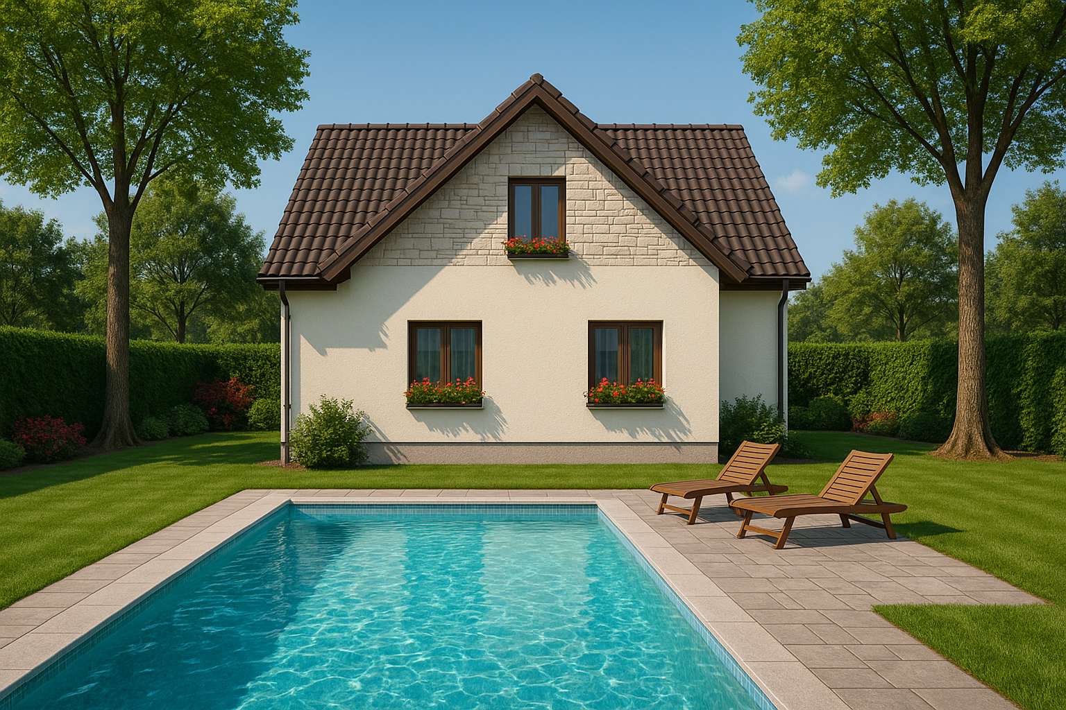 The finishing standard and individual elements of the offer, such as the shape, color, and roof covering, the color and type of joinery, and the type of heating (e.g., heat pump), can be changed. Please contact our Customer Service Department to prepare a customized offer with the desired changes.