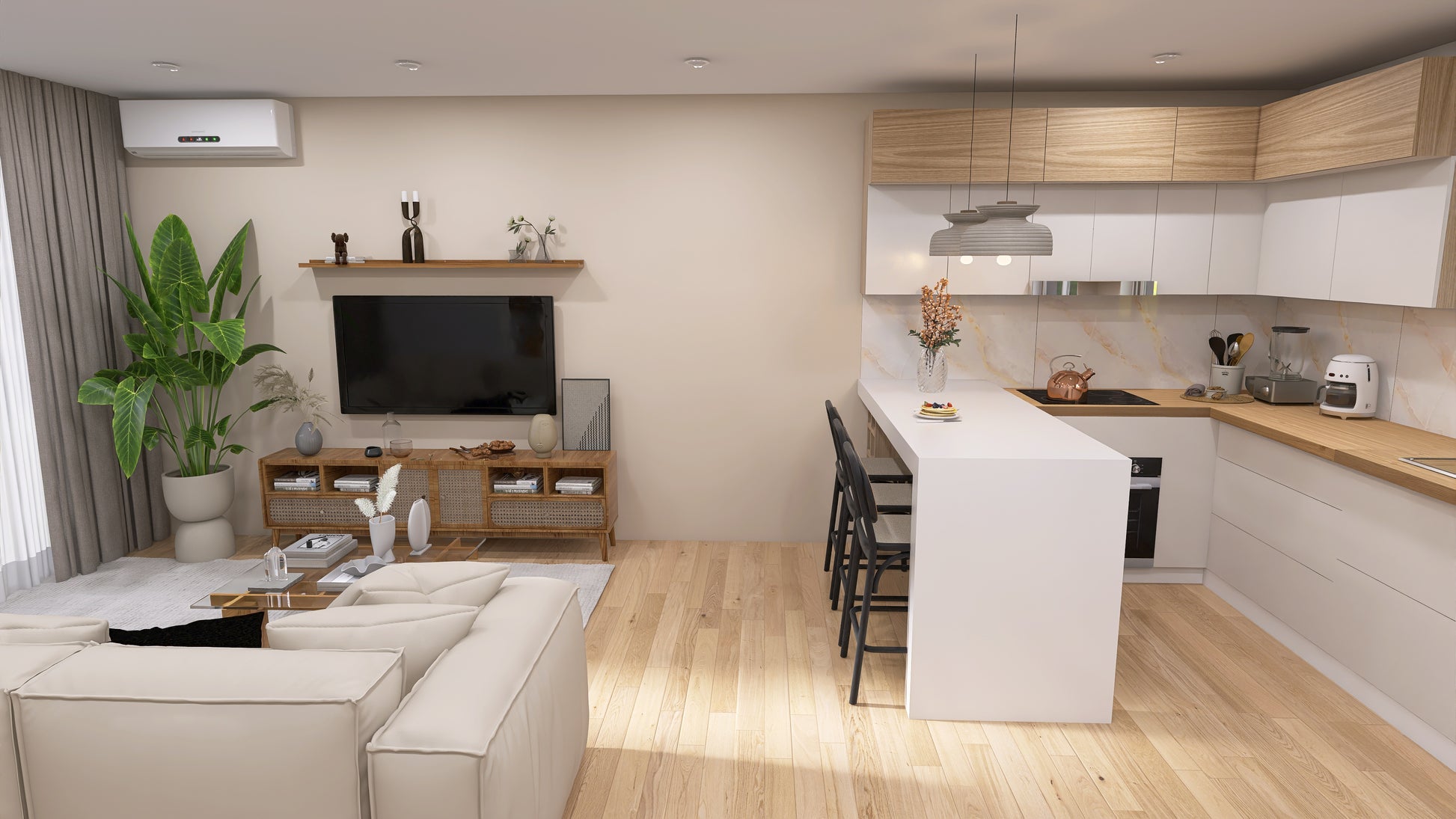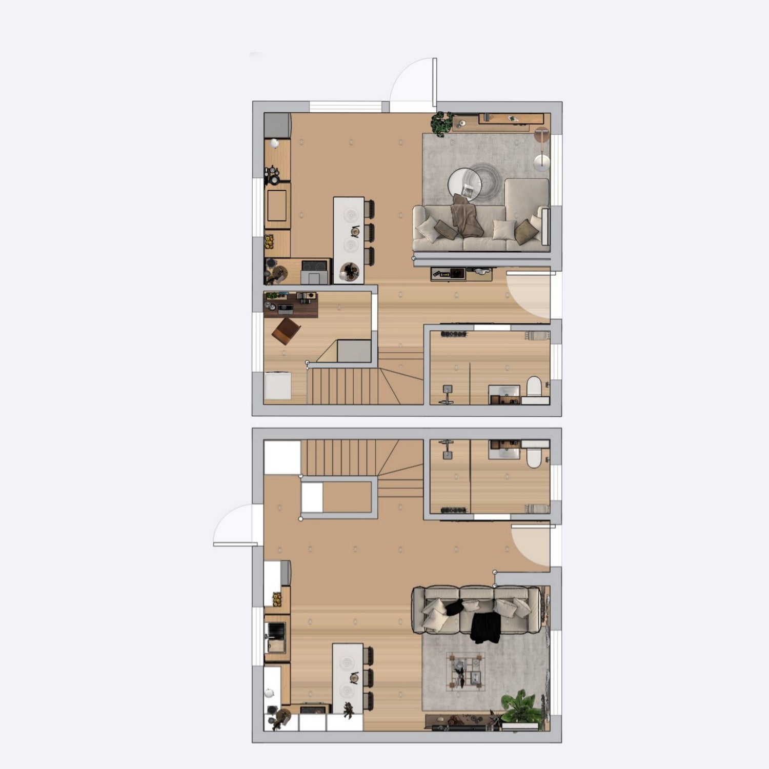 Duohaus is a two-unit semi-detached house , consisting of two independent sections: option A (right section) and option B (left section). Each section has a separate entrance, full living functionality, and the ability to be used as a standalone home.