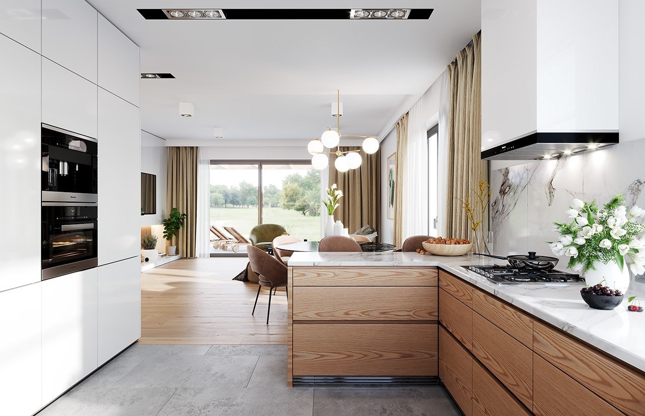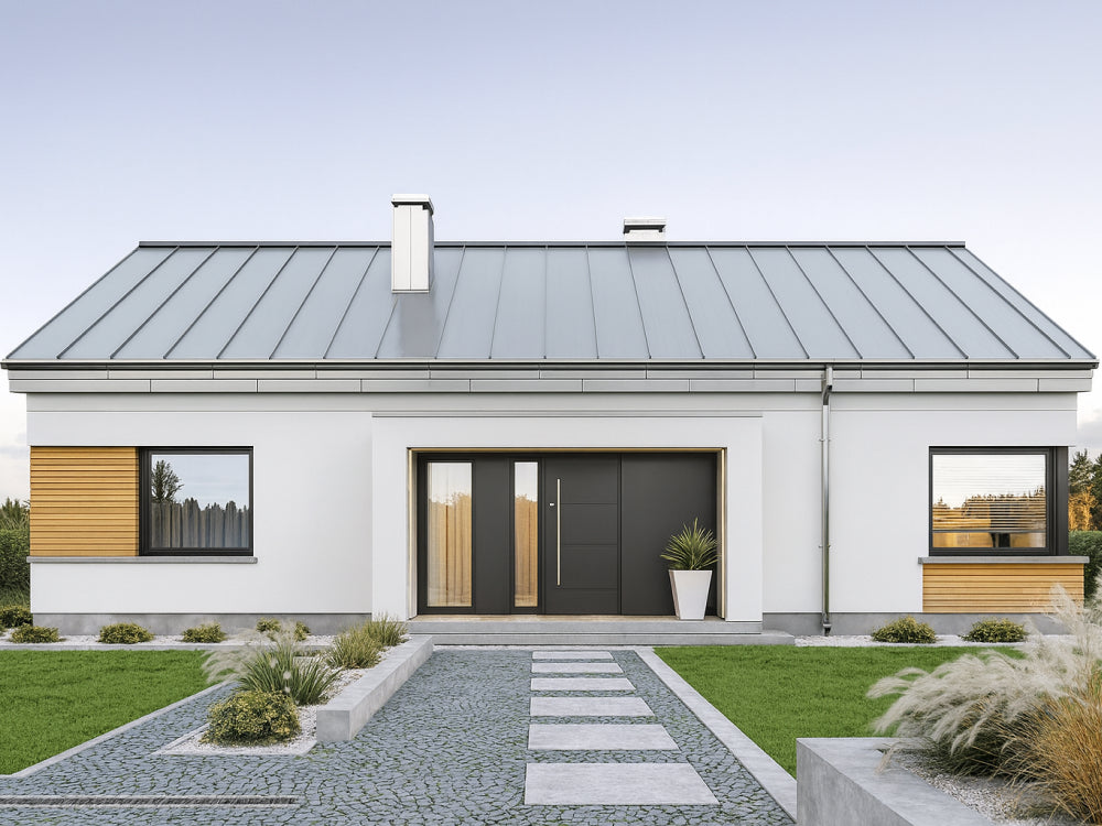 The finishing standard and individual elements of the offer, such as the shape, color, and roof covering, the color and type of joinery, and the type of heating (e.g., heat pump), can be changed. Please contact our Customer Service Department to prepare a customized offer with the desired changes.