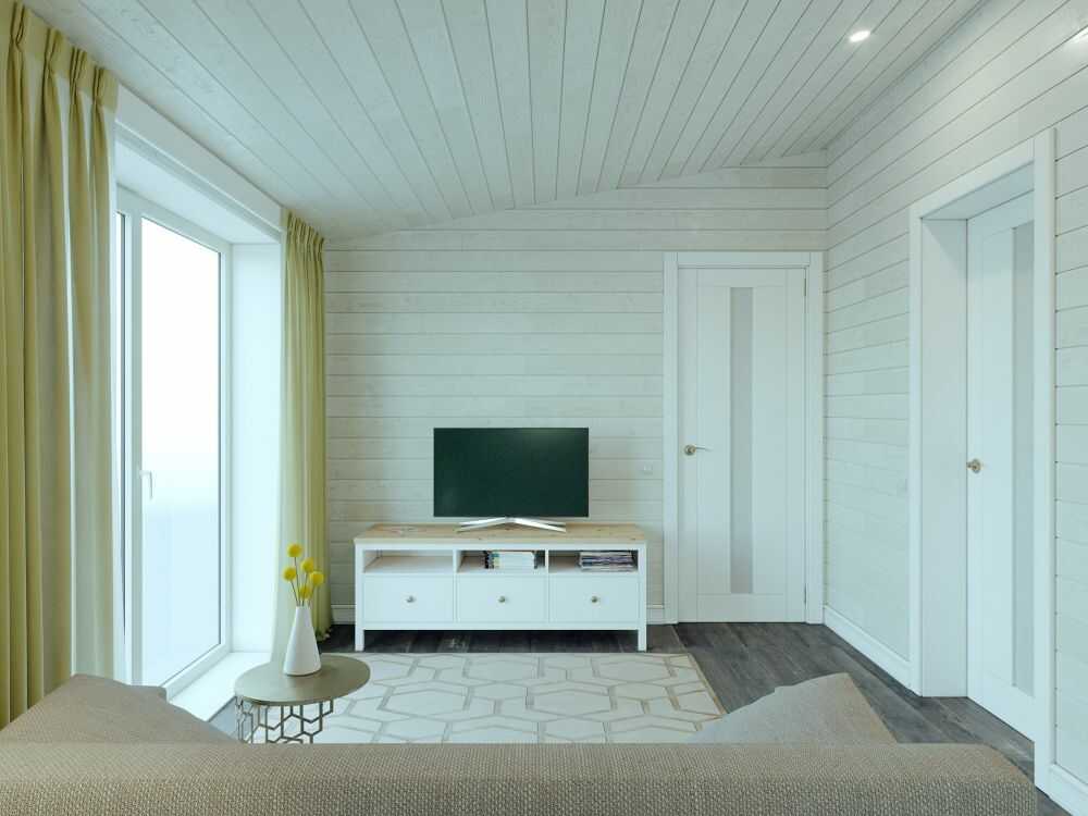 - Walls and ceilings: plasterboard painted white, with