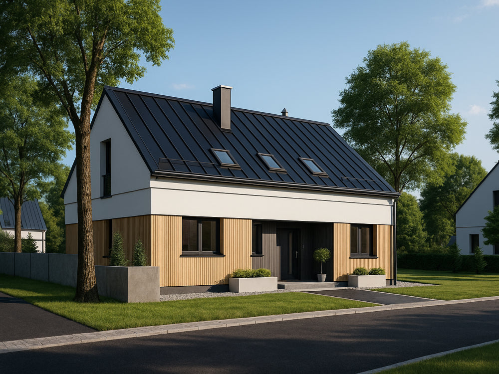Standard wykończenia i poszczególne elementy oferty takie jak np. kształt, kolor i pokrycie dachu, kolor i rodzaj stolarki, rodzaj ogrzewania (np. pompa ciepła) można zmienić. Zapraszamy do kontaktu z Biurem Obsługi Klienta w celu przygotowania indywidualnej oferty z wybranymi zmianami.