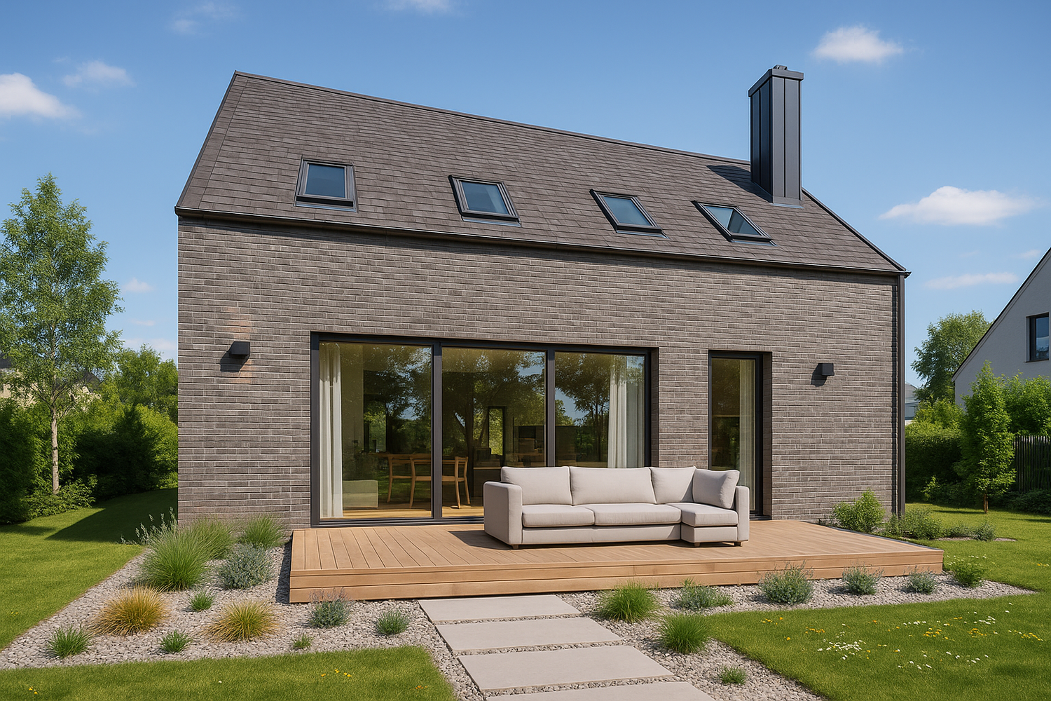 - Dach: gotowe pokrycie dachowe oraz system rynnowy
