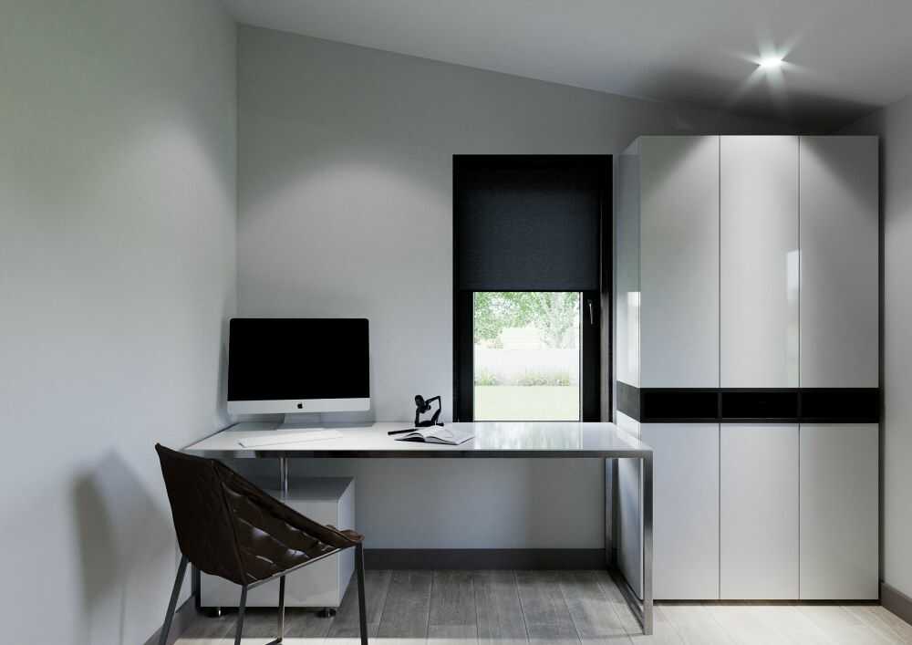 - W pełni wykończona elewacja (połączenie drewna modyfikowanego termicznie i paneli metalowych na rąbek stojący), pokrycie dachowe, okna i drzwi