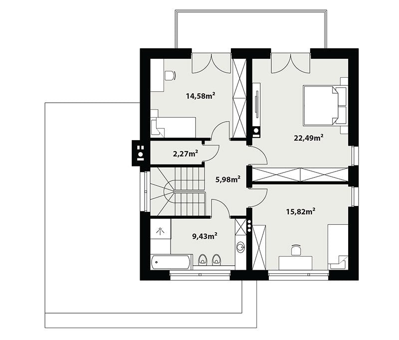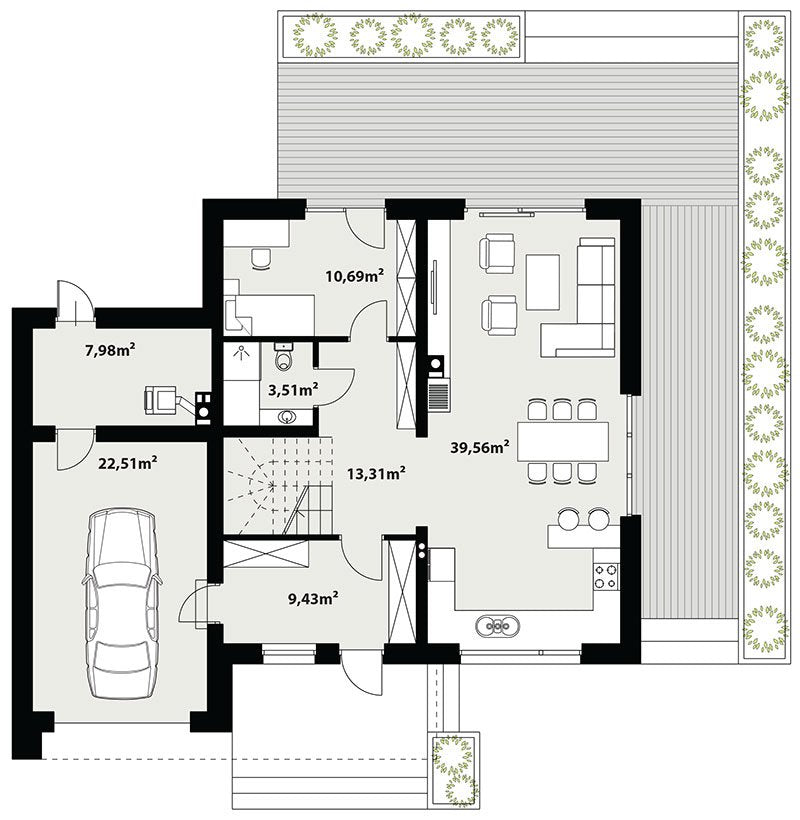 Standard wykończenia i poszczególne elementy oferty takie jak np. kształt, kolor i pokrycie dachu, kolor i rodzaj stolarki, rodzaj ogrzewania (np. pompa ciepła) można zmienić. Zapraszamy do kontaktu z Biurem Obsługi Klienta w celu przygotowania indywidualnej oferty z wybranymi zmianami.