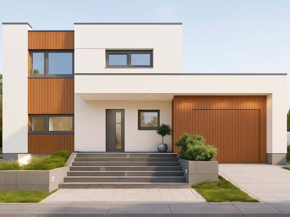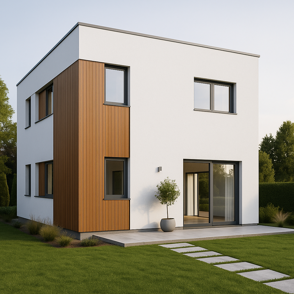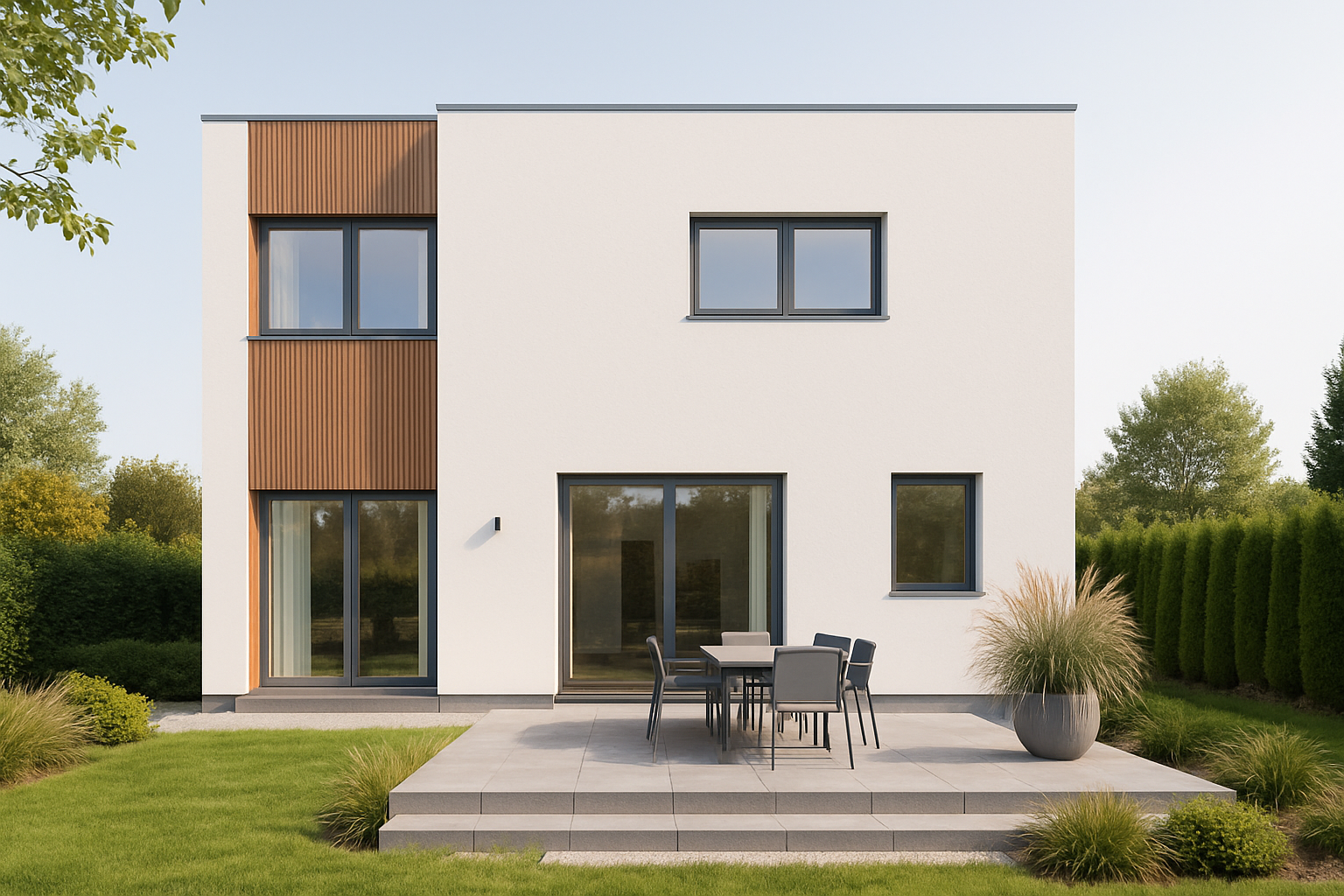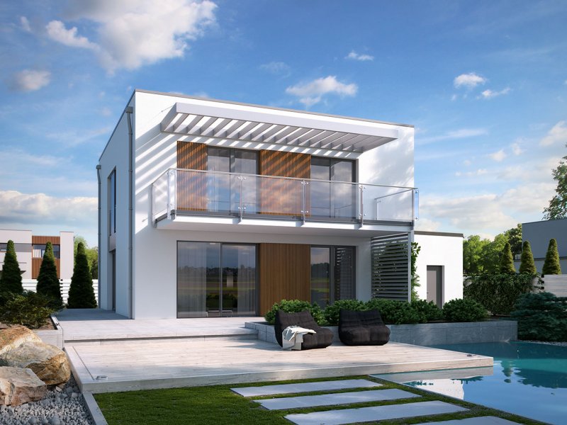 - Nowoczesny, energooszczędny dom w technologii prefabrykowanej.