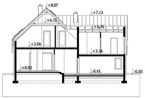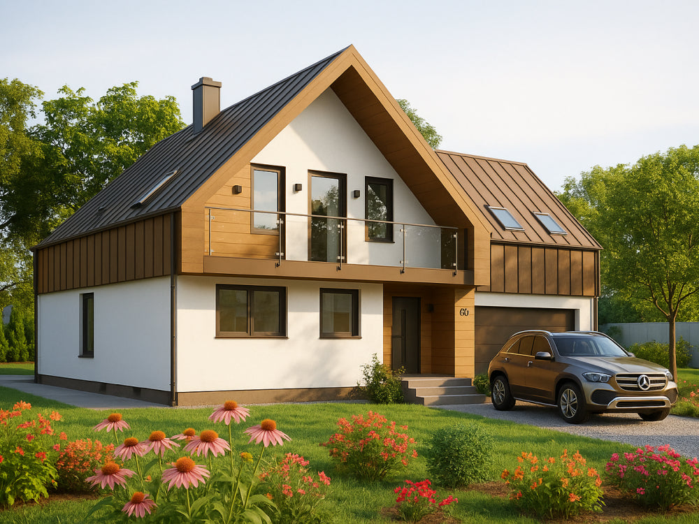 Standard wykończenia i poszczególne elementy oferty takie jak np. kształt, kolor i pokrycie dachu, kolor i rodzaj stolarki, rodzaj ogrzewania (np. pompa ciepła) można zmienić. Zapraszamy do kontaktu z Biurem Obsługi Klienta w celu przygotowania indywidualnej oferty z wybranymi zmianami.