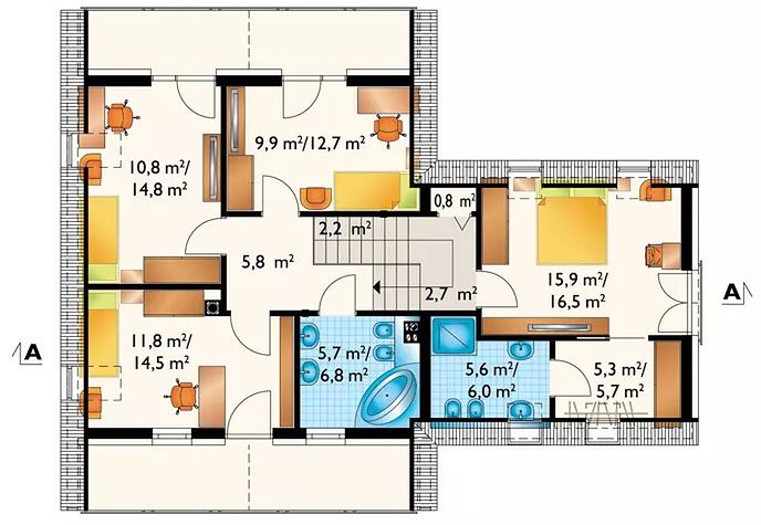 - Wentylacja: niezależne rekuperatory w sypialniach i łazienkach