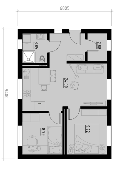 Powierzchnia użytkowa: 50 m2