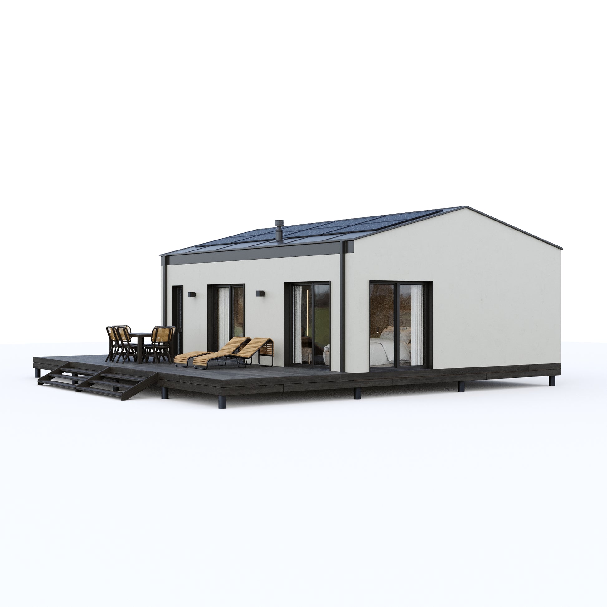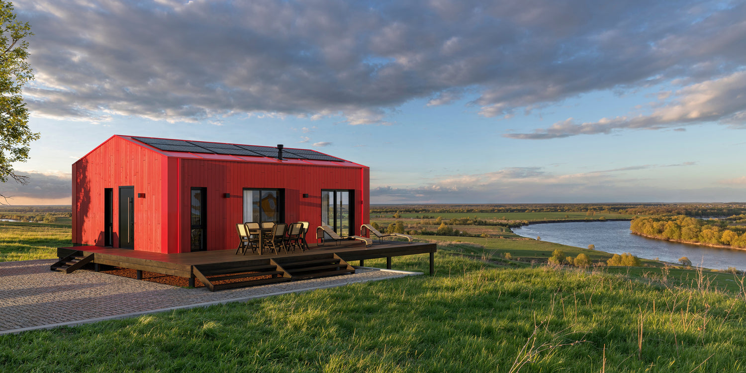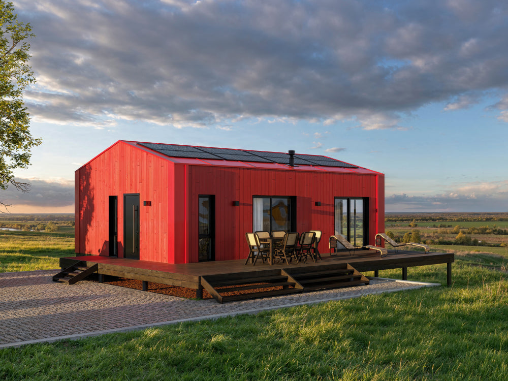 - Prefabrykowany dwumodułowy dom mieszkalny zaprojektowany z myślą o komfortowym użytkowaniu przez cały rok!
