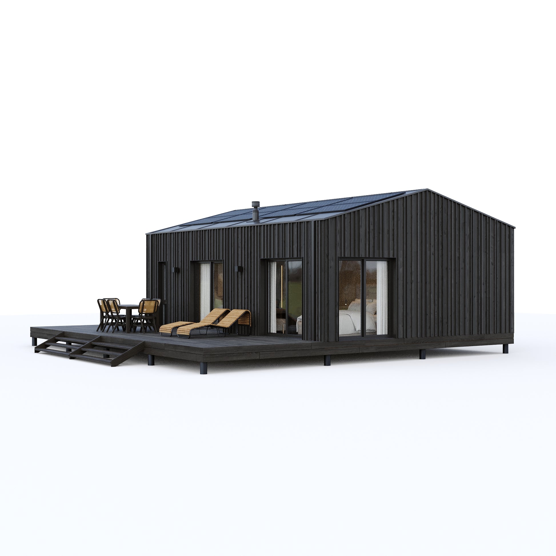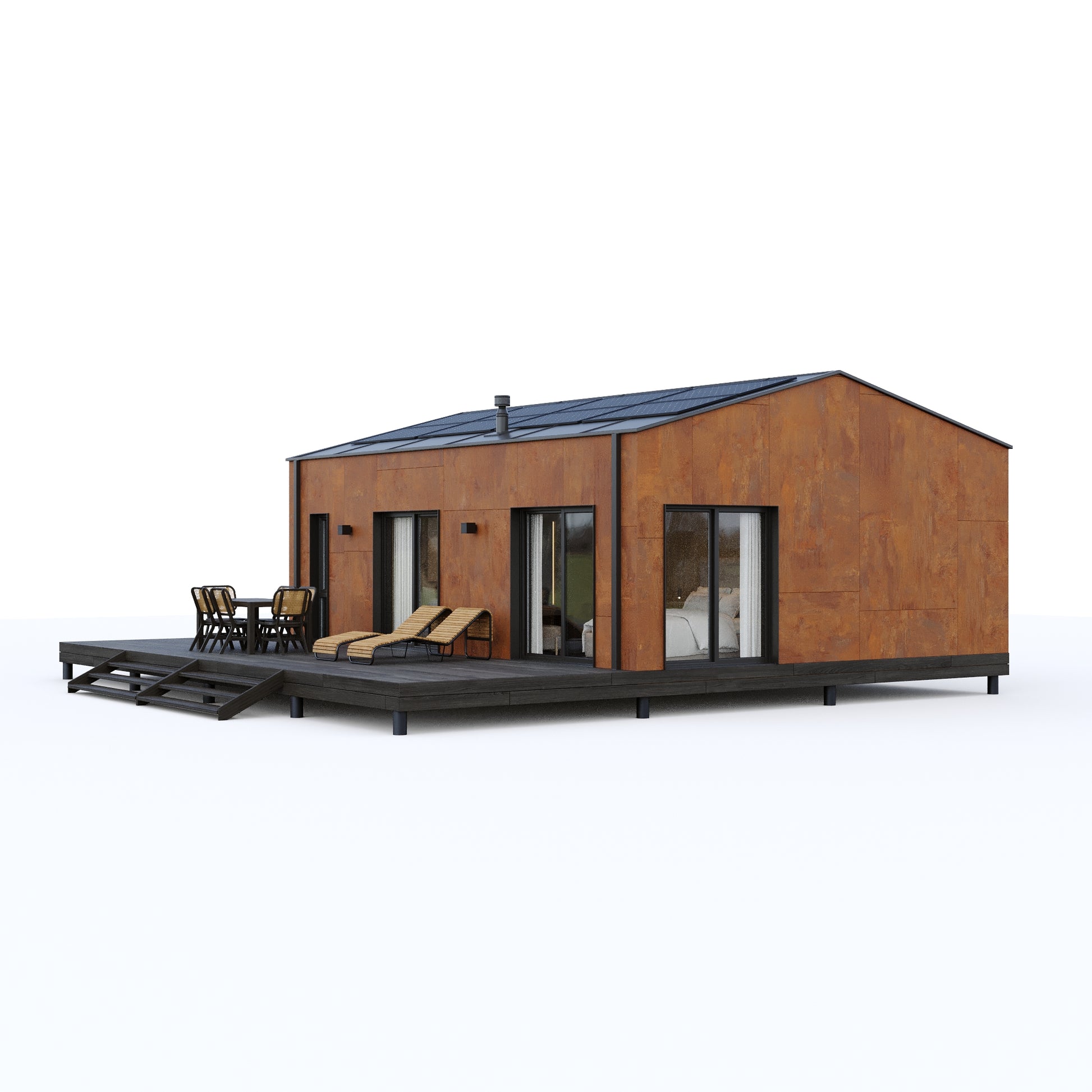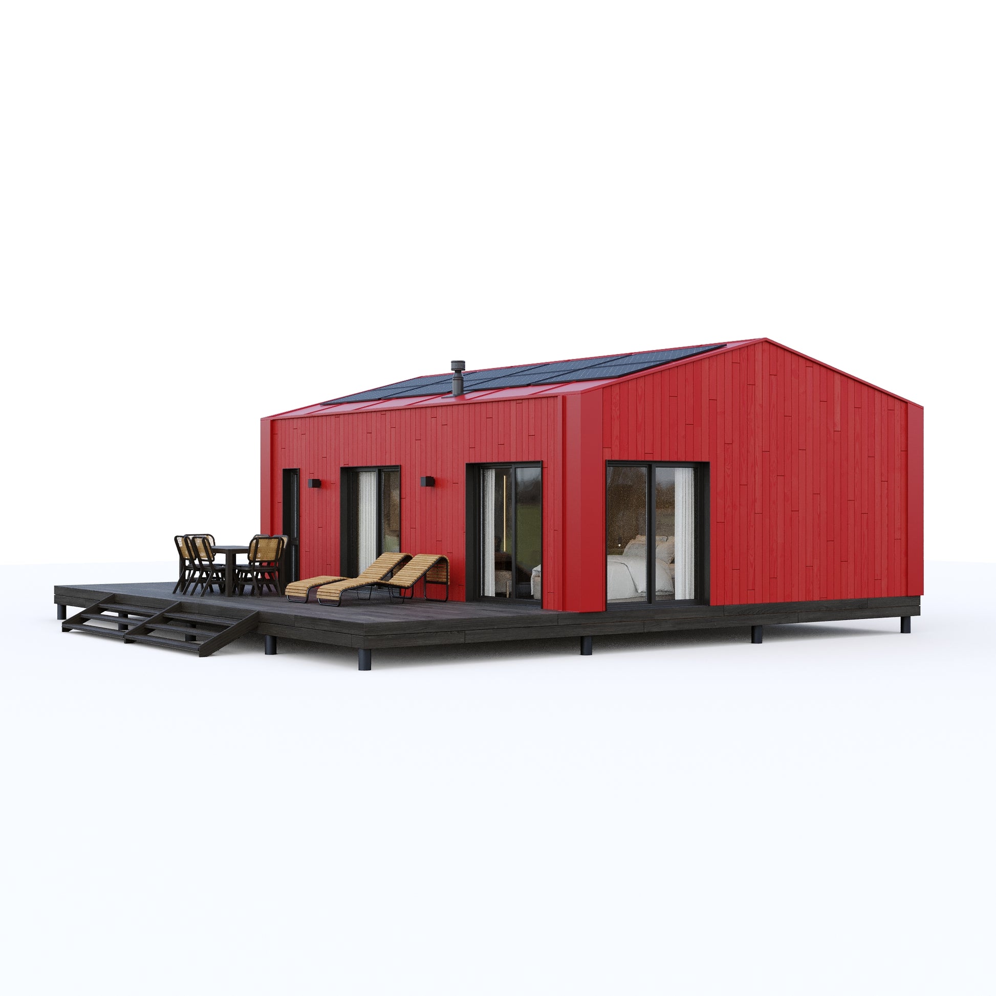 - Prefabrykowany dwumodułowy dom mieszkalny zaprojektowany z myślą o komfortowym użytkowaniu przez cały rok!